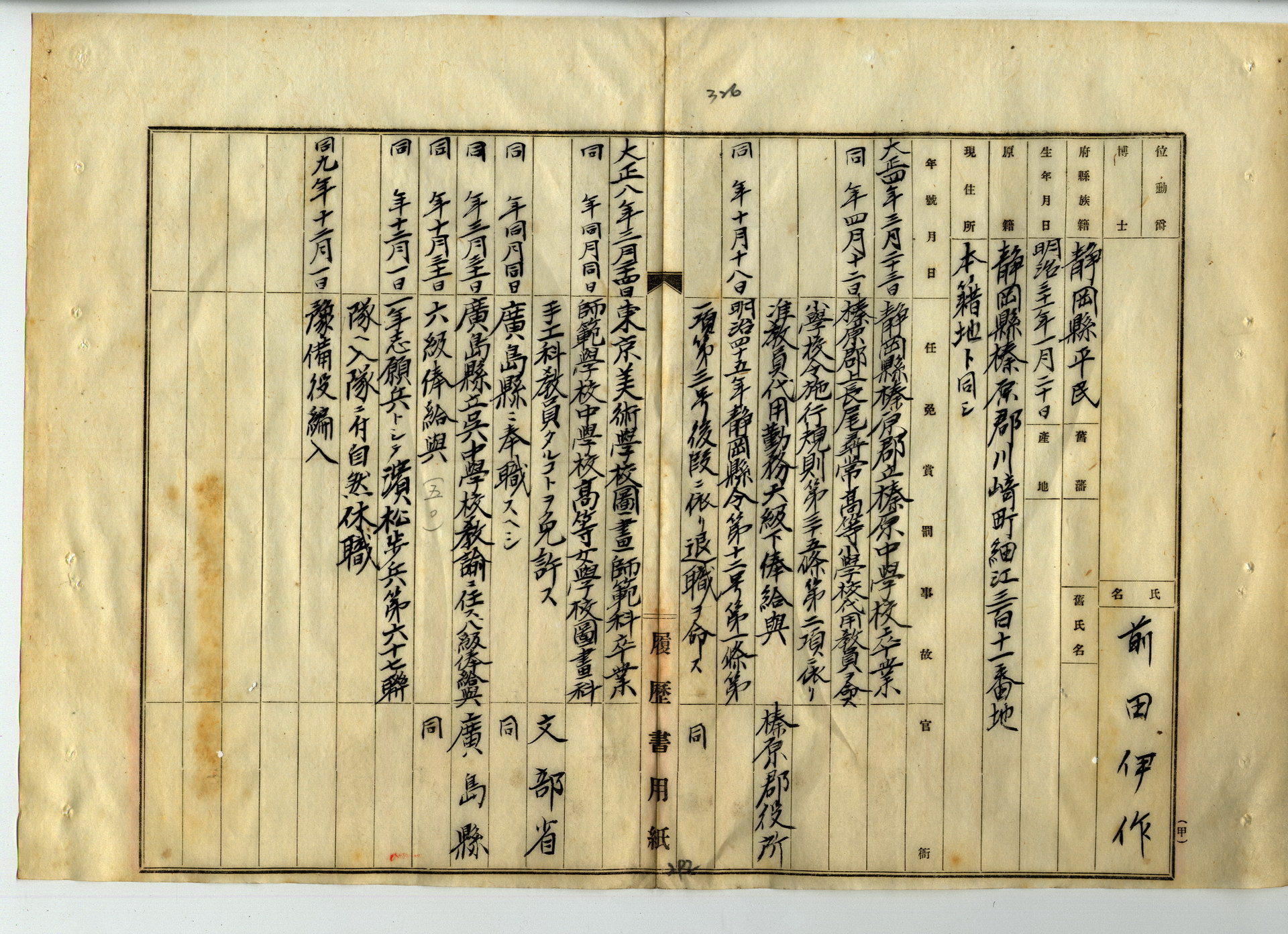 1.〈〔休職廣島縣立吳中學校教諭〕前田伊作(任府師範學校助教授)〉,《臺灣總督府檔案》,國史館臺灣文獻館,典藏號:00003113063。