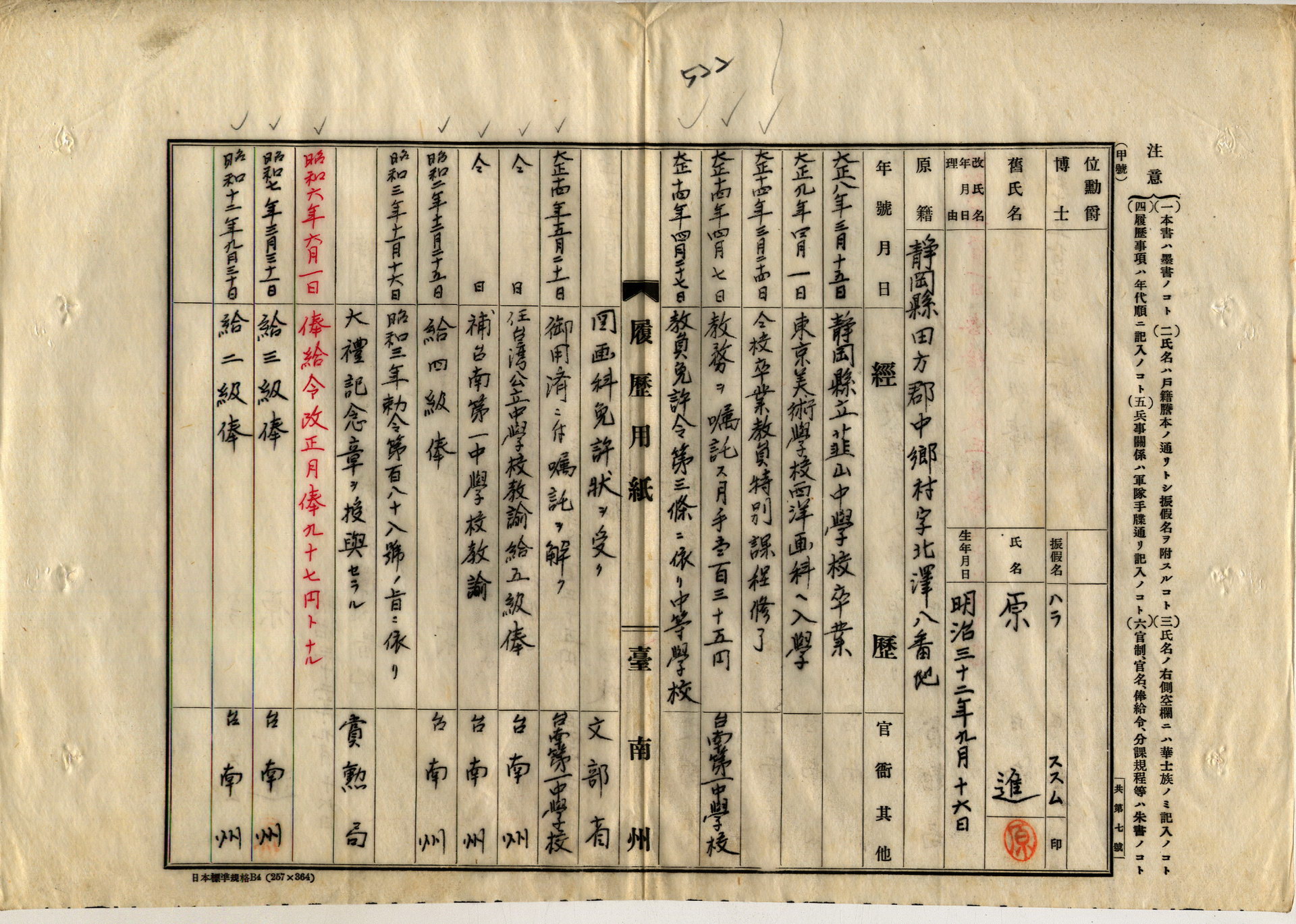 原進履歷表