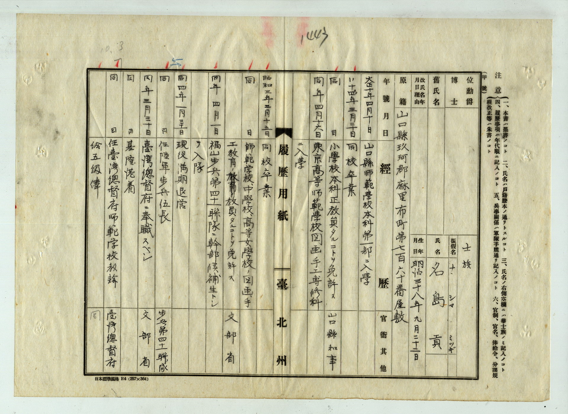 名島貢履歷表