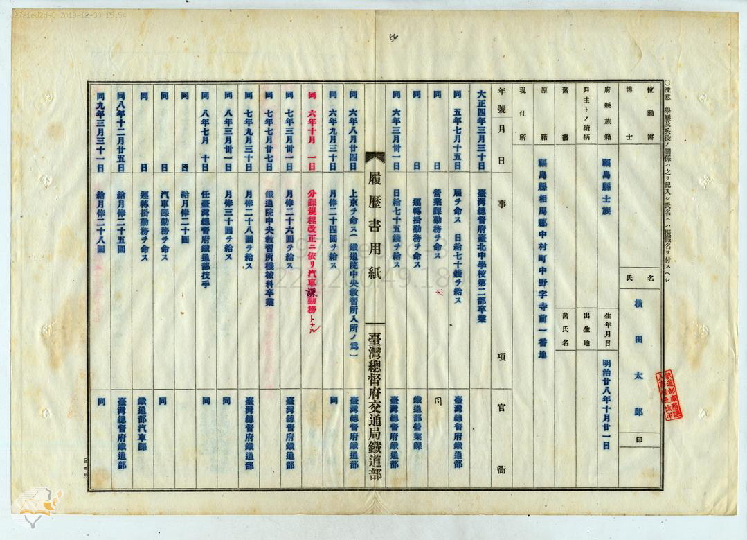 鐵道部營業課;鐵道部汽車課;鐵道部運轉課;鐵道部庶務課;交通局總務課;彰化製糖所鐵道係