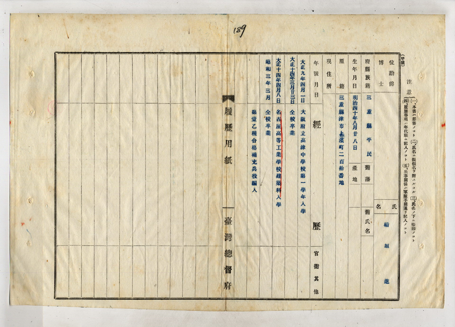總督官房會計課;總督官房營繕課;遞信部庶務課;遞信部工務課;臺中州總務部土木課;臺中州警察部保安課;臺中工業學校
