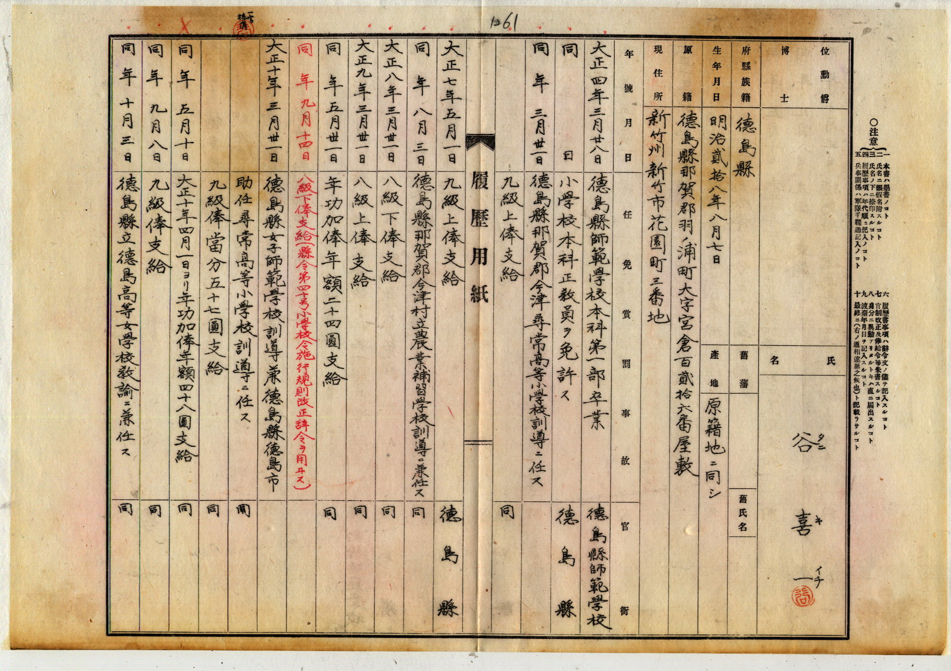 谷喜一履歷表