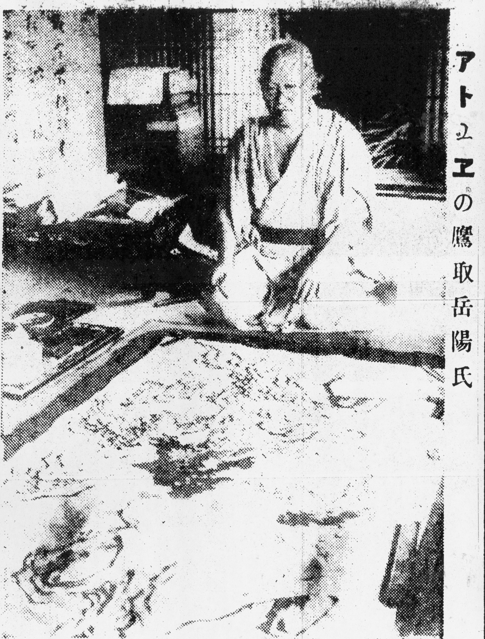 〈狼毫を揮つて雄渾の相を描かうとする 南畫=鷹取岳陽氏〉,《臺灣日日新報》,1927-09-19(3版)。