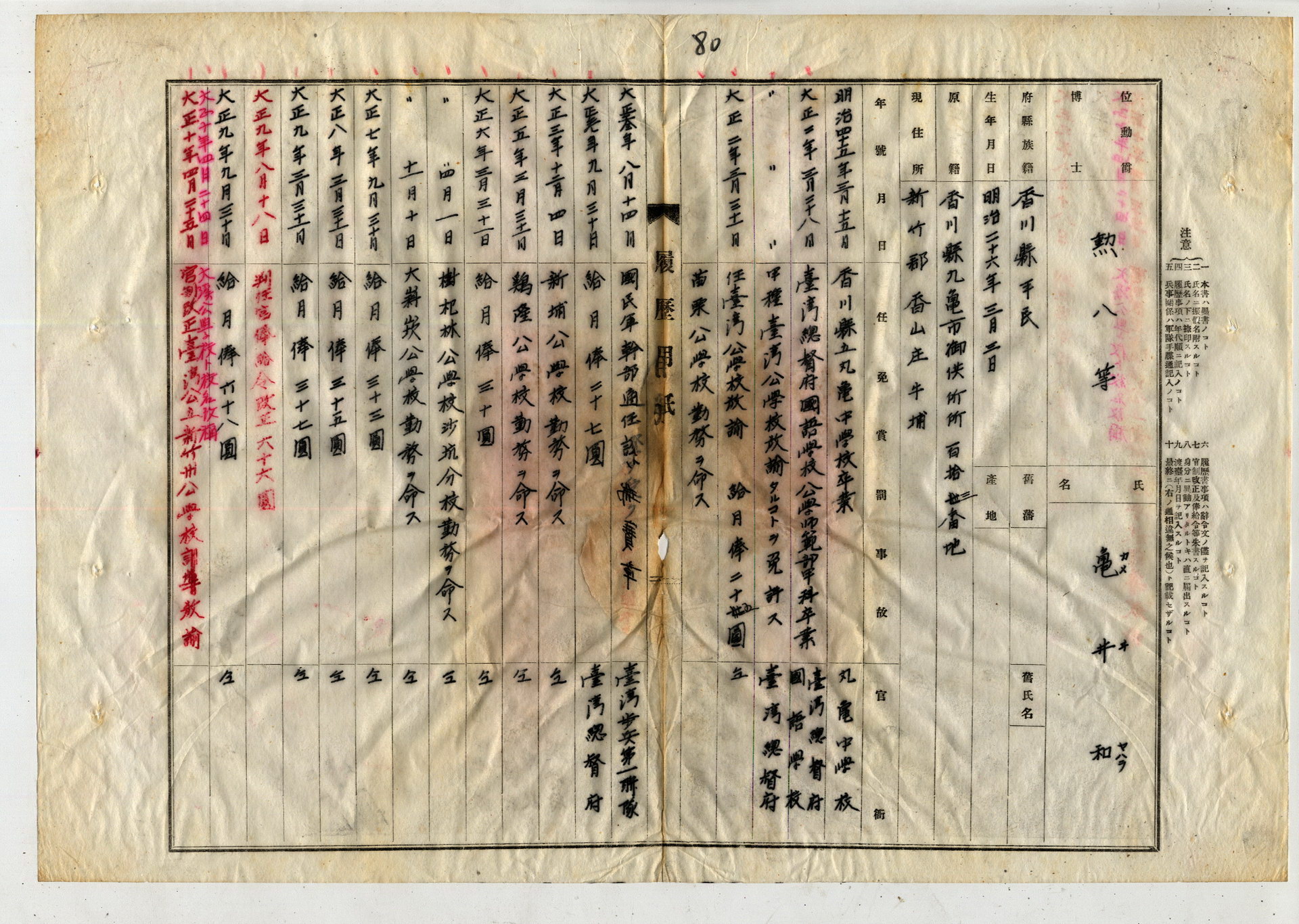 苗栗公學校;新埔公學校;雞隆公學校;樹杞林公學校沙坑分校;大嵙崁公學校;大溪公學校;北埔公學校;鶴岡公學校;香山公學校;頭分公學校;新竹圖書館