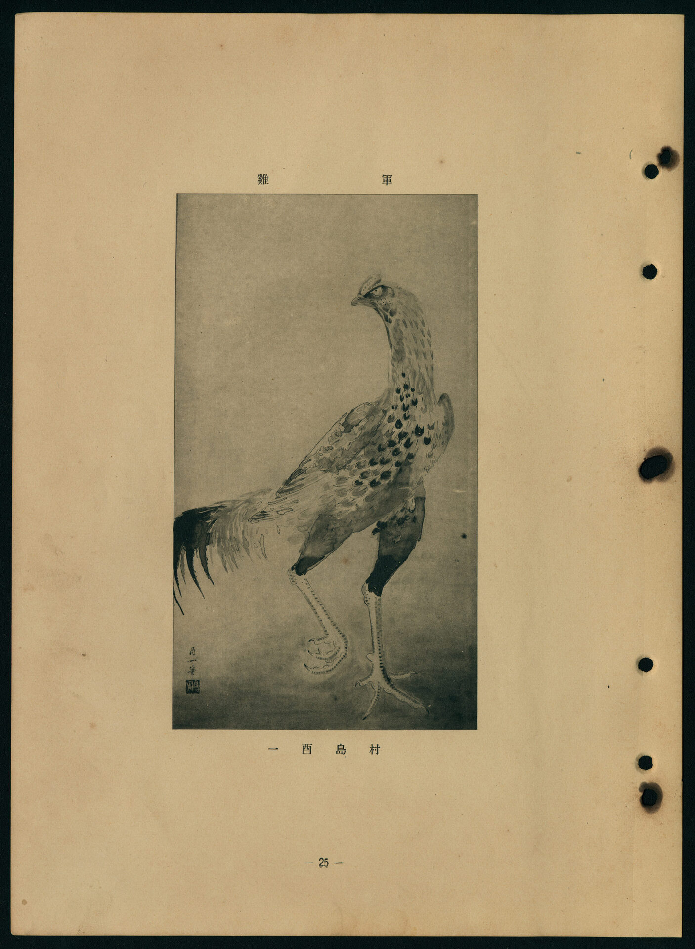 本籍富山,曾以審查員身分出品第十回臺展(1936)東洋畫部,畫作落款為漢字「酉一筆」加上一款方印。1897年,村島酉一出生於日本富山縣,本名「村島酉一郎」。村島酉一自富山中學校畢業後,前往東京就讀東京美術學校日本畫科,師事結城素明,1923年畢業。在校期間於1922年第一次入選帝展後,又多次於日本美術官展出品。1936年,村島酉一與其師長結城素明共同受聘為第十回臺展東洋畫部審查員,並出品〈軍雞〉一作。而後,村島酉一持續於日本美術官展出品。戰後多以故鄉富山縣的山海為題材,並舉辦多次個展,1983年逝世,享壽86歲。