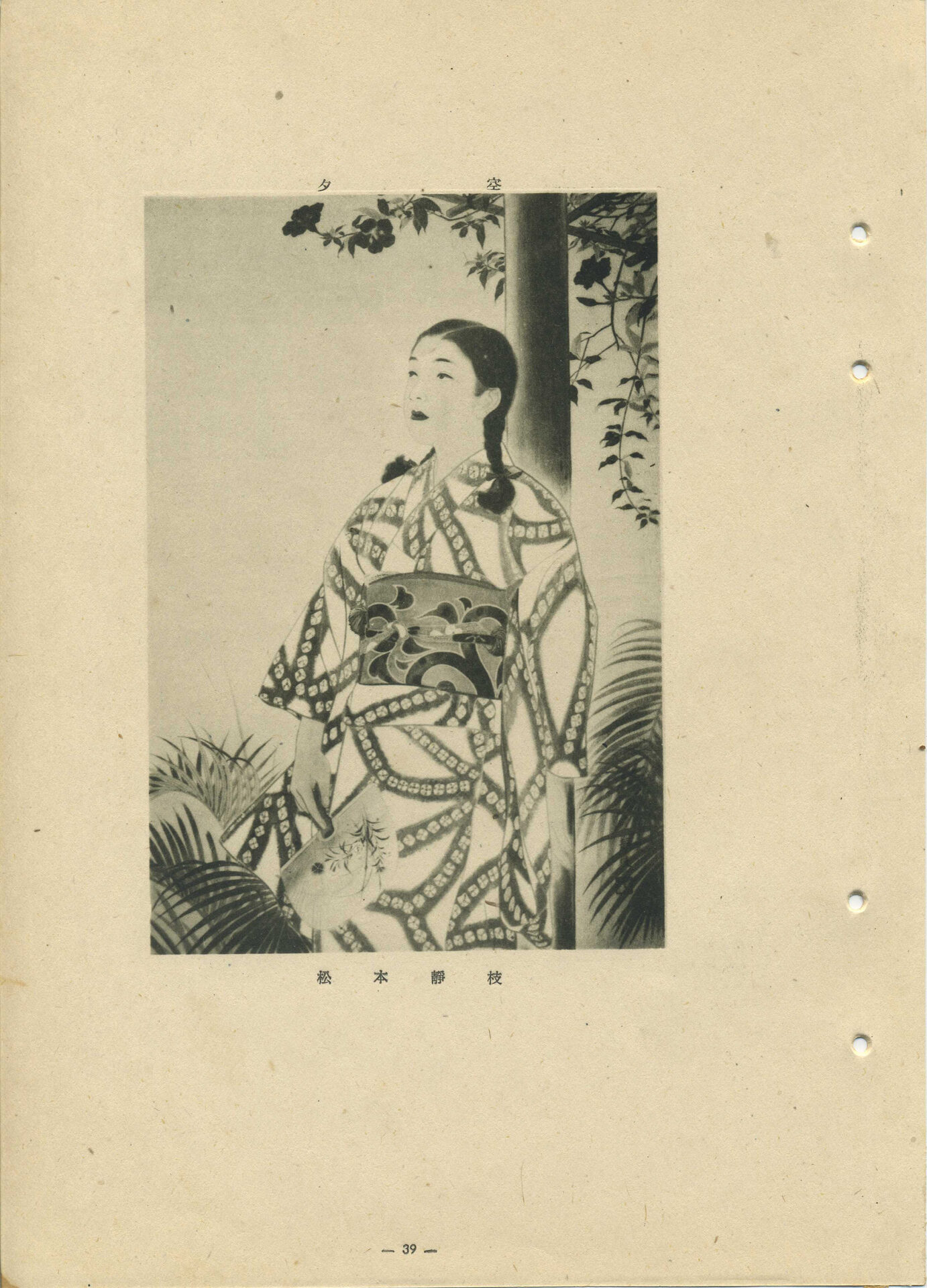 本籍和歌山(推測),曾入選第六回府展(1943)東洋畫部,畫作落款為漢字「靜枝」外加一款方印。松本靜枝出身不詳,1936年畢業自和歌山市高等女學校,後於1940年2月渡臺。1943年8月起,師事臺灣的東洋畫家野村誠月,同年便以〈夕空〉入選第六回府展。松本靜枝在幸町的自宅,接受《興南新聞》訪問時,時年24歲的松本表示:「此次能夠初次入選,要歸功於老師的指導。由於八月才開始習畫,因此在選題時十分困擾,最後選定繪製妹妹的姿勢。而因為是第一次出品,加上畫得很急促,我不覺得會入選。由於自己喜歡人物畫,因此之後會繼續練習。」然而之後並無松本靜枝參加其他展覽的紀錄。
