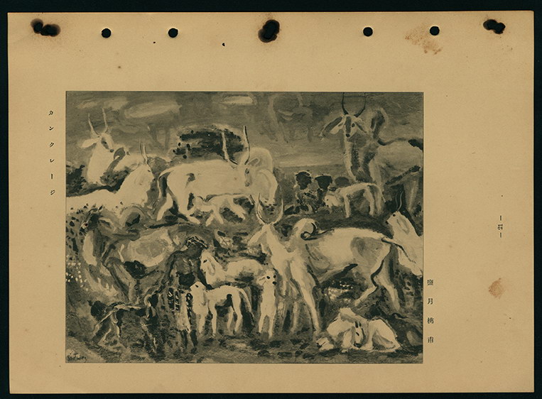 此為審查員鹽月桃甫出品昭和9年(1934)第8回臺展西洋畫部的畫作。「カンクレージ」即印度乳牛康古拉牛(Kankrej),由於體質強健,加上與臺灣黃牛同一祖先,適合用以交配改良,加上勞動用或乳用皆宜,故在1910年代被引進臺灣。《臺日畫報》曾在臺展前採訪鹽月,報導中鹽月表示此畫是「這個夏天前往恆春牧場旅行的作品」,為40號的畫作。恆春牧場即恆春種畜支所(今行政院農業委員會畜產試驗所恆春分所),正是最先引進康古拉牛的牧場。雖說是前往牧場旅行所畫,不過畫中身穿傳統服飾的原住民,與印度牛和樂融融的互動描寫,更多的是理想化的場景,寄寓著畫家個人的想法,這點正如鹽月自己所述:「不光只是記錄事實,還要與情緒交流,才可以稱作藝術」。青山茂評曰:「這幅畫描寫的是白色的印度牛和穿紅衣的蕃人牧童、綠色的原野、藍色的大海和天空,以及它們合奏出來的交響樂曲」。並點出畫家之所以「捨棄照片式的透視法,採取抽象式結構等等,這些在在說明此畫走的是幻想性,而非理智性路線」,而所謂「抽象式結構」、「幻想性」或許正是鹽月用以表達情緒,表現個人理想寄託的創作手法。