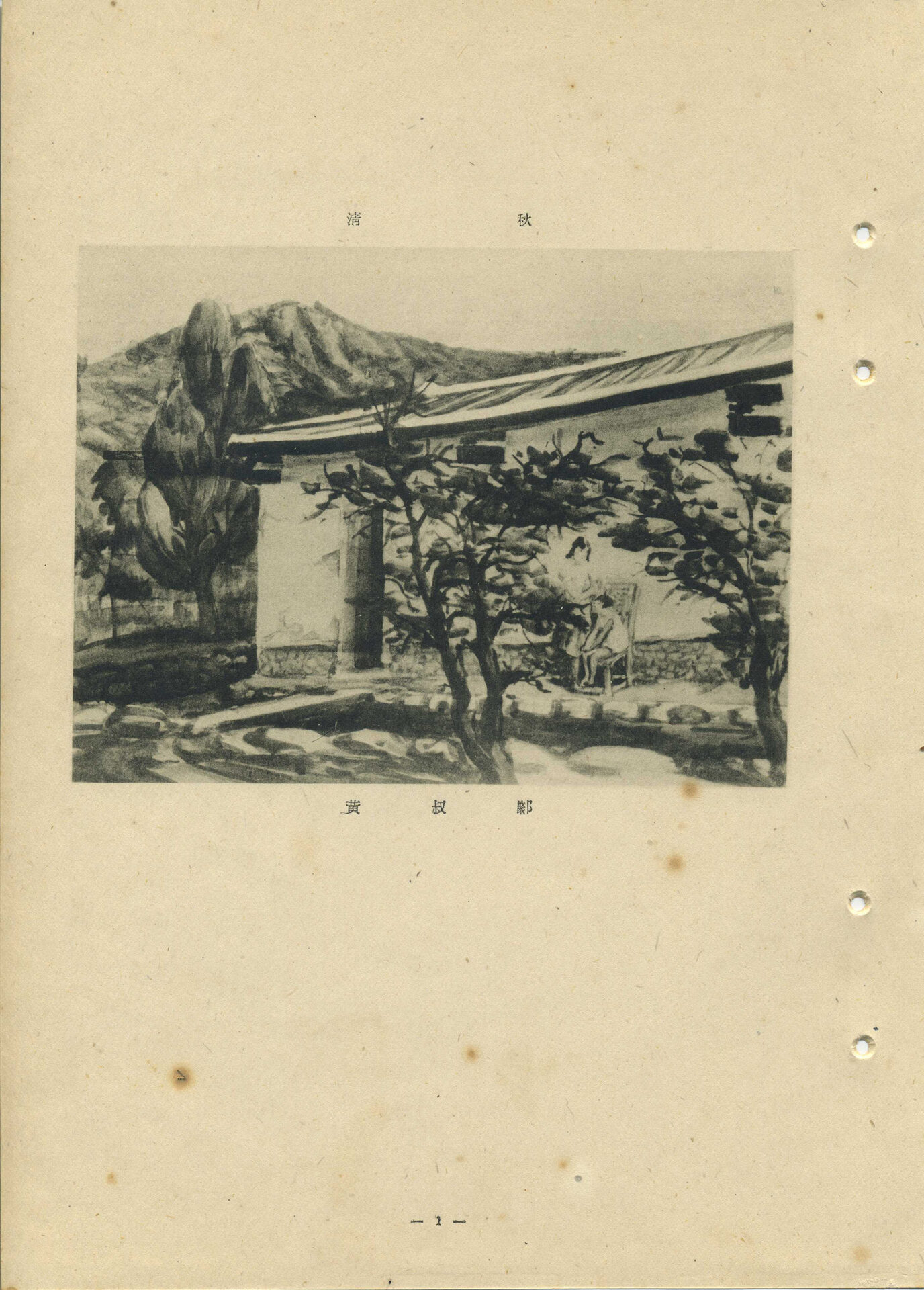 此為黃叔鄹入選1943年(昭和18年)第六回府展西洋畫部的畫作。王白淵稱此畫為「水彩小品」,由此可知此畫為小尺幅的水彩作品。前景為一棟臺灣民房,白牆旁有一對母女,女兒則坐著,兩人一同享受親子時刻。門口有條小溝渠,渠上架有木橋連通民房外頭,這種溝渠可能是民宅自用排水,或是引水灌溉隔壁的農田。水邊種有兩叢灌木,樹葉稀疏。遠處樹林的後方,可見高聳綿延的山岳,搭配無雲清朗的天空,表現秋天秋高氣爽的氛圍。畫面多以重疊細碎的筆法所構成,構圖穩當。黃叔鄹就讀臺南師範學校期間,美術老師為山本磯一,學習水彩畫的基礎。山本畢業自東京美術學校圖畫師範科,因此其空間構圖有別於石川欽一郎一派的英式水彩表現。王白淵分析畫面:「一位像是母親的女性在臺灣的平房民家前面,正在幫自己的孩子梳頭髮」,評曰:「感覺尚佳」,從評語的前後文脈來看,或有可能是人物間的情感描寫讓畫作增添溫馨的感覺,而得此好評。