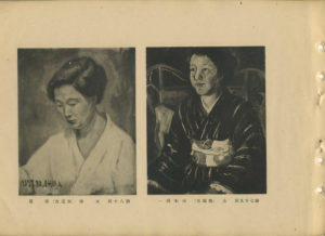 右圖為山本磯一以無鑑查身分出品1927年(昭和2年)第一回臺展西洋畫部的作品,在《第一回臺灣美術展覽會圖錄》(1928)的目次頁中,僅標註畫家居住在「臺南市開山町二之一七三」,不過翻閱職員錄,可知作者任教於同町以南的「臺南師範學校」(今國立臺南大學),故得以用免審查條件出品。此畫描繪一側身和服婦人像,婦人雙眼平視畫面左側,身穿深色條紋和服,腰部繫著淺色斑紋腰帶,雙手低放在大腿上。身後是圓弧木條所構成的寬背木椅,墊有枕頭或布料。此畫未見於當時評論中,兒童文學創作者西岡塘翠發表在《臺灣時報》的〈島を彩れる美術の秋〉(1927),提及「有十九幅作品的無鑑查室」,推測包含此畫在內的所有無鑑查作品,皆被陳列於同一展室內。