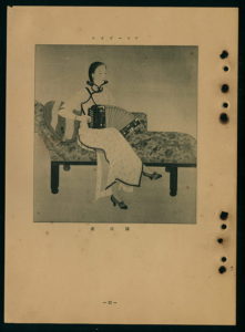 此為陳進入選昭和10年(1935)第9回臺展東洋畫部的畫作。「アコーディオン」為「手風琴」(Accordion)。畫家以自己的大姊陳新為模特兒,描繪女子身穿白色漢服,端坐在西式躺椅(chaise longue),演奏手風琴的景象。上從手風琴上的標示可知,其為日本品牌「トンボ」(蜻蜓,Tombo)所製作,該品牌成立於明治35年(1902),一開始主要販售玩具,後來轉戰樂器市場,開始製作口琴。直到昭和6年(1931)起,才開始進行手風琴的量產及推廣販售。無論是有著華麗花鳥紋飾的躺椅,還是時髦的手風琴,都在在顯示畫中女子生活頗為富裕。此畫現藏於臺北市立美術館,畫面的左下角蓋有一枚「進」字的朱文方印。此畫當時陳列在東洋畫部第3展覽室,立石鐵臣撰文評曰:「人物畫方面,例如陳進的《手風琴》,同樣也想獻上上述建議。在臺展,像陳進這樣明顯具備熟練技法的畫家,若成天只顧汲汲於那種美麗畫面,只怕所謂日本精神的錦旗,也會黯然褪色」。「上述建議」是指文章前段對黃水文作品的評論:「雖是特選,卻未能帶給我們任何感慨。僅止於美麗」,顯示立石認為陳進此畫技法雖優異,卻也是缺乏令人感動之處。