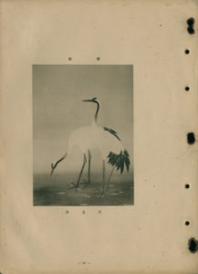 此為1932年(昭和7年)第六回臺展東洋畫部呂孟津的入選作。鶴在東方文化中有時是仙人的坐騎,如南極仙翁等,由此延伸出長壽、求仙的吉祥寓意,另外也有「梅妻鶴子」的文學典故。也因此,鶴的圖像時常作為吉祥繪畫的題材,出現在販售用的商業繪畫,或是寺廟彩繪中。呂孟津早年隨日本畫家岡本春堂,以及傳統書畫家出身的呂鐵州學習,對這類傳統圖繪應不陌生。畫家描繪兩隻白鶴立於地上,一隻低頭似在覓食,一隻則抬頭前視。畫面清新、乾淨,且畫家著重於對鳥類生態的描寫,例如地上散落一地的羽毛,可能反映了鳥類的「換羽」行為。落款「孟津」位於畫作左下角,附有一枚方印。