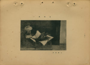 此為1933年(昭和8年)第七回臺展西洋畫部的太齋春夫入選作,榮獲特選及臺展賞,作品圖版上方的「◉」、「○」即對應這兩個獎項。構圖及題材皆與其在1932年(昭和7年)第六回臺展的入選作〈靜物〉相同,描繪擺放在桌上的數條鹹魚乾及煤燈。其中魚隻以紙張或布料盛裝在方盒內,並未蓋上蓋子,隨著光線從畫面右側照射而下,凸顯其明暗對比,影子則落在鹹魚右後方的煤燈上。日治時期雖已架設電線、電線桿,使電力在大城市逐漸普及,不過煤氣燈仍被一般住家所使用。落款「昭和八年八月 太齋春夫」位於畫作右下角。展覽期間,此作陳列於西洋畫部第五室。