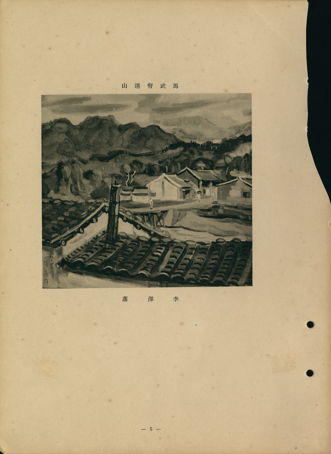此為1939年(昭和14年)第二回府展西洋畫部李澤藩的入選作,原作現由李澤藩美術館典藏。馬武督山取自泰雅族語,位於現今新竹鎮關西以東的山區。此漢譯早在日本治臺初期就已被使用,泛見於理蕃相關報導中。畫家以淡雅且富含水份的水彩,描繪馬武督群峰跌宕起伏、綿延不絕的山勢。近景的漢人民宅屋瓦,巧妙的扮演框景的效果,將觀眾視線集中於中遠景的房舍與連峰。李澤藩在畫面中運用不同彩度的綠色與黃色,營造空氣景深的變化,並在近、中景的白牆家屋添加不透明的白色筆觸,凸顯對比。雖說在李澤藩的畫作中,馬武督山壟罩在暖灰的色調中,既高聳、神聖又遙不可及,但在1930年代,馬武督的泰雅族歷經理蕃統治,在報紙上的形象已轉變為順從統治的姿態,而政府注意到山區豐富的礦產,有意進行山地開發與道路開鑿。落款「昭和十四年九月 澤藩作」位於畫作左下角。