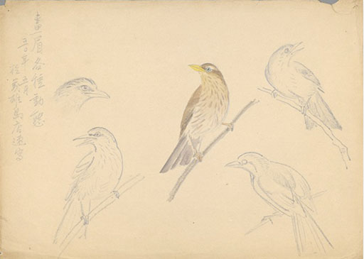 圖8. 林玉山,〈畫眉鳥各種動態〉,年代不詳,素描,26.5×36.8公分,國立臺灣美術館典藏。