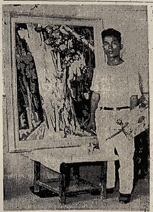1938年10月的《大阪朝日新聞.臺灣版》「官展第一年アトリヱ訪問記」(官展第一年的畫室訪問記)專欄中,記者前往高田馨當時任教的學校進行訪問。留下高田馨當時準備投稿第一回府展的作品及畫家樣貌。而報導中,畫家身後的那幅畫作〈幹〉,之後順利獲得第一回府展特選。