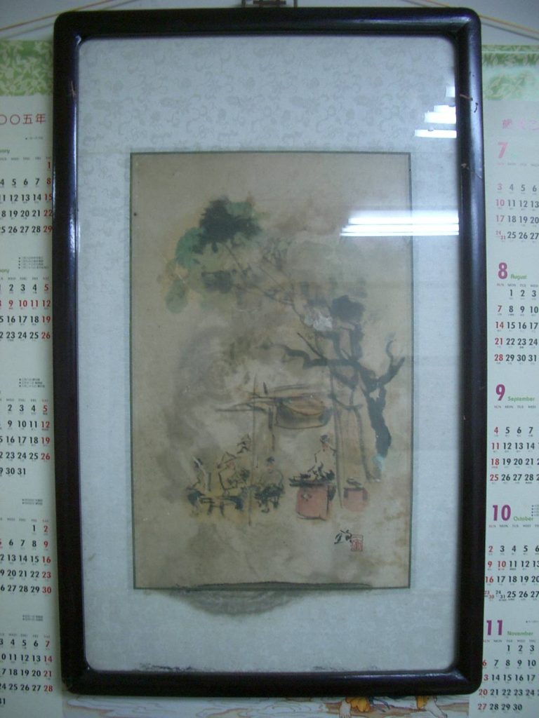 透過名單之後的契機,我們有幸聯繫家屬,並經由口述歷史,填補有關李揚波的過往──像是戰後李揚波慷慨地讓黃奕濱住在承德路自宅的三樓,兩人也一同出席聚會場合(圖12),顯示彼此之間保持亦師亦友的良好關係,家中晚輩也尊稱黃奕濱為「黃老師」。李揚波與商界「臺南幫」的侯雨利(1900-1989)等實業家頗有交情,而隱身在巨擘形象背後,則是他作為藝術創作者與愛好者的一面。李揚波曾在孫子水墨畫稿上暈開的墨點,隨手添上幾筆,便化身為一隻麻雀,展現他深藏不露的畫藝。藝術作為嗜好,李揚波積累不少的收藏,除了藏有石川欽一郎的水彩作品(圖13),1980年代,因畫家梁奕焚(1937-)購買染料而結識的機緣,李揚波也收藏其作品。(註14)這些尚待深入發掘的故事,也凸顯李揚波的生命猶如調色般流轉,層層交織,多彩而鮮明。