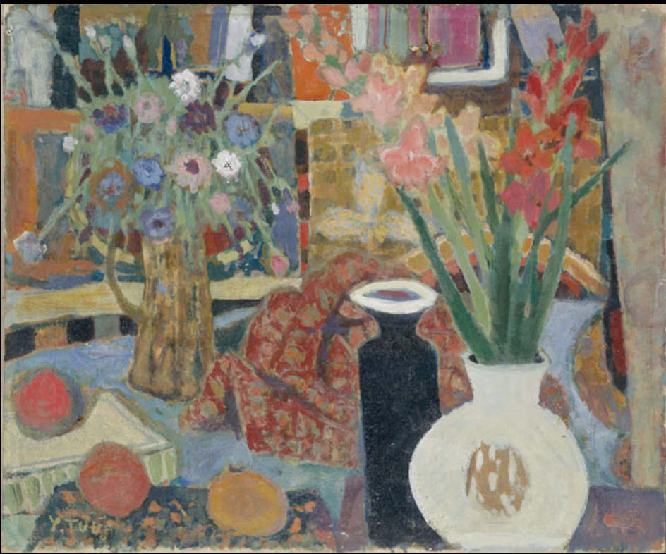 現藏於宮崎縣立美術館津田雄一郎的三幅精彩作品:〈花競う〉(1953)、〈花と壺〉(1984)、〈霧島〉(1986),皆能看到津田在汲取前輩藝術家的基礎上,綻放出自己的光彩。
