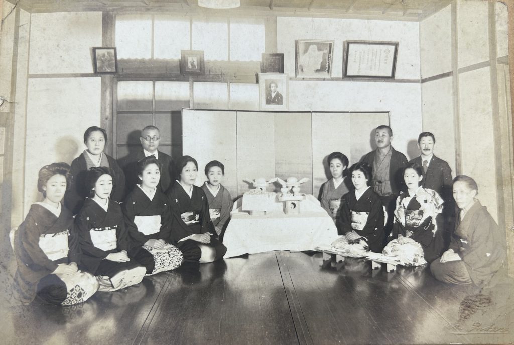 照片背後註記「昭和九年三月□ 台北第一高女予餞會□ 汐汲」,部分情況下日文漢字中「潮」、「汐」通用。