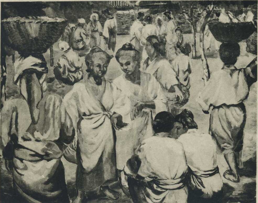 圖1. 當間幸雄入選第三回府展作品〈市場〉。